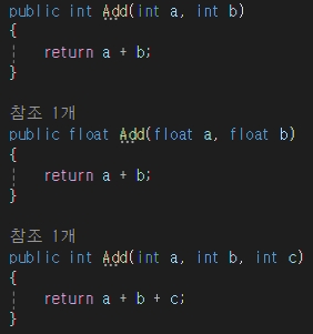 위의 예시처럼 심하면 public int Add라는 메서드 명이 완전히 같다.
